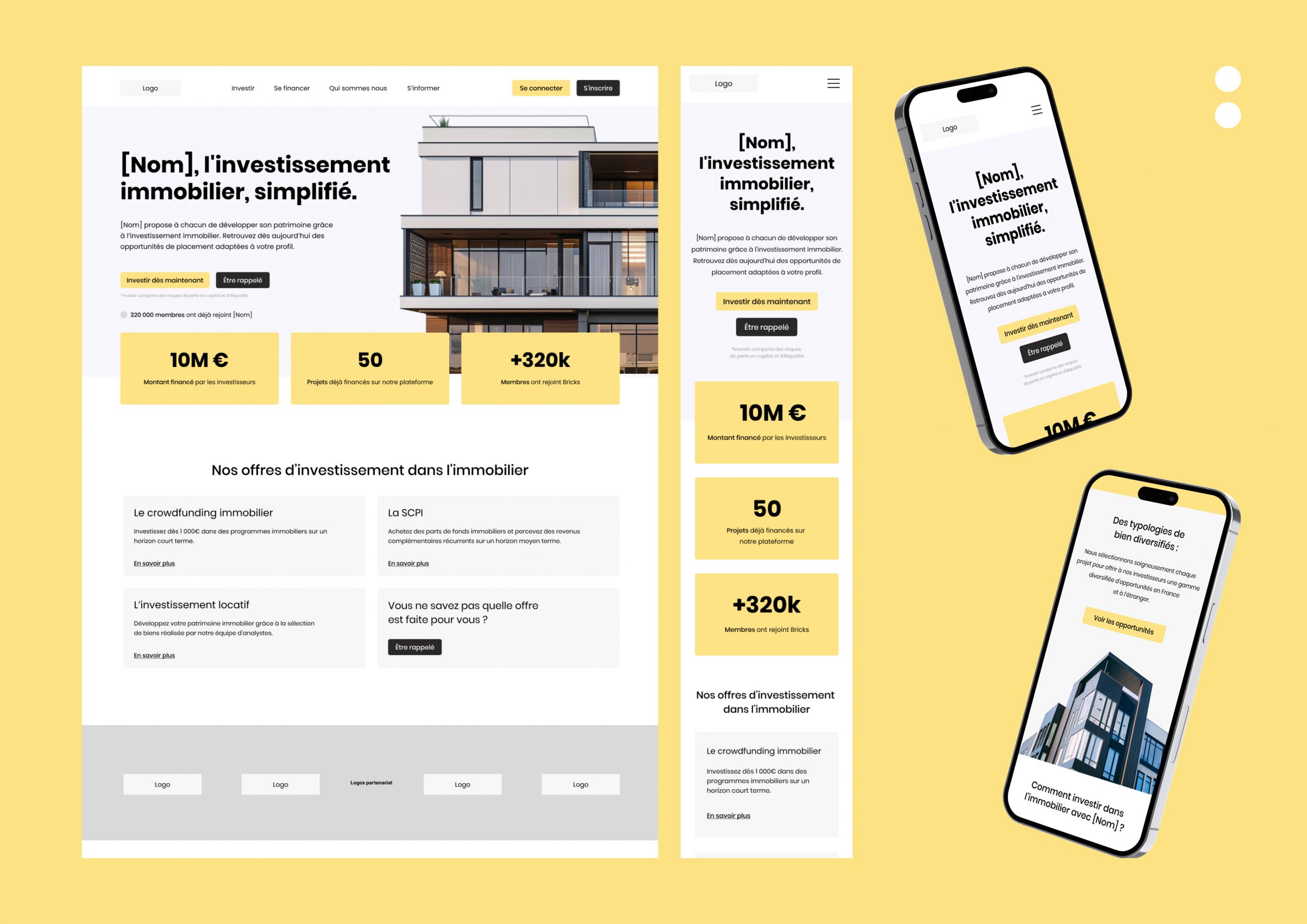 Création du site internet de Chambrelan, une plateforme dédiée à l’investissement immobilier simplifié. Le design, à la fois clair et structuré, met en valeur les offres, les avantages chiffrés (10 M€, 50 projets, +320 000 utilisateurs), tout en offrant une navigation fluide et intuitive. Le site permet un accès rapide aux opportunités d’investissement, propose une carte interactive et offre des ressources pédagogiques pour accompagner les investisseurs. L’interface, moderne et épurée, inspire confiance et garantit une accessibilité optimale pour tous les profils.