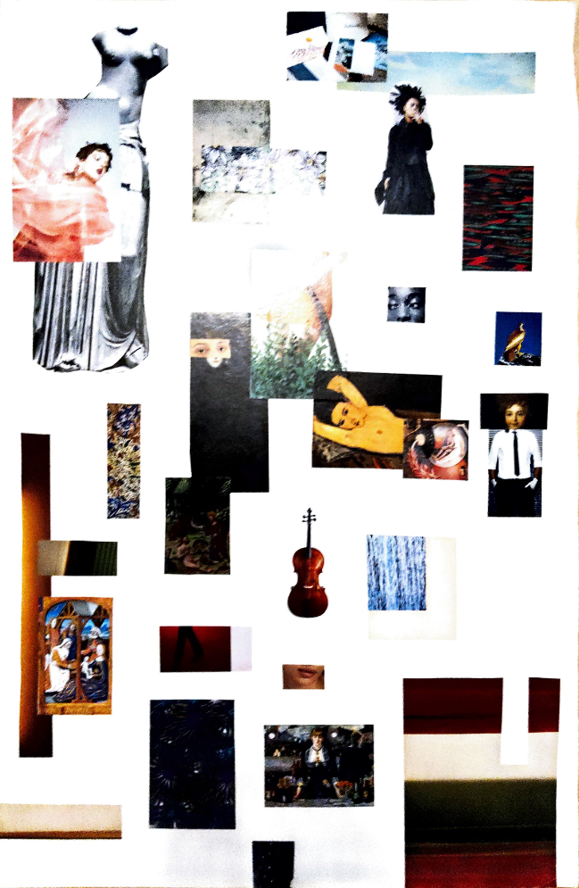 À travers ces trois collages, je propose une exploration visuelle de la mémoire, du regard et des tensions qui façonnent nos identités. Chaque composition est un espace de confrontation entre images collectées et imaginaires personnels, entre silence et saturation. Les fragments juxtaposés, tantôt intimes, tantôt universels, interrogent la construction de soi à l’ère de la surcharge visuelle et de l’héritage culturel. C’est une tentative de recomposer du sens à partir du chaos, de faire dialoguer les époques, les visages, les mots.