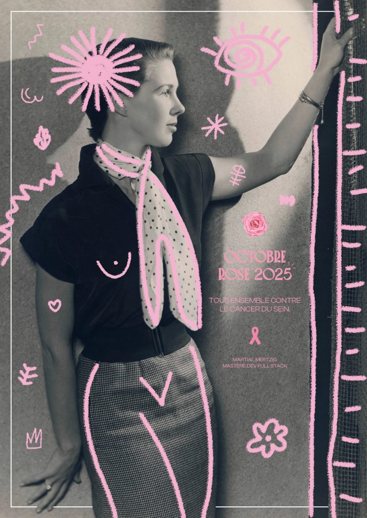 Cette affiche artistique et engagée s’inscrit dans la campagne Octobre Rose 2025, dédiée à la sensibilisation et à la lutte contre le cancer du sein.